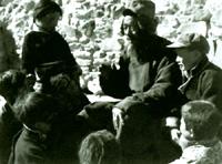 參加過1904年抗英戰(zhàn)斗的藏族戰(zhàn)士、康馬縣老人達(dá)瓦頓珠(1961年拍攝時,他已有81歲高齡)在向孩子們講述當(dāng)年戰(zhàn)斗的故事
