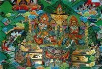 在后弘期初期的一個(gè)世紀(jì)中,衛(wèi)藏十人和他們的弟子在前后藏各地建立了許多增團(tuán)和寺廟,成為西藏佛教的主流,遺留至今的康瑪縣的艾旺寺和江浦寺(薩瑪達(dá)寺)、夏魯堅(jiān)貢寺、扎囊寺的宗教藝術(shù),反映了漢地和河西隴右地區(qū)的藝術(shù)對(duì)西藏的影響,成為西藏佛教藝術(shù)中的精品。古格王朝還在1042年迎請(qǐng)印度高僧阿底峽(孟加拉國(guó)人)入藏傳法。1045年阿底峽又被前藏各地區(qū)的佛教人士的代表仲敦巴(100—1064)迎請(qǐng)到前藏地區(qū)傳送,1054年阿底峽在聶塘地方去世后,由仲敦巴統(tǒng)領(lǐng)眾弟子,在1056年在拉薩北面興建了熱振寺,由此逐漸發(fā)展出噶當(dāng)派。在這個(gè)時(shí)期有一個(gè)修習(xí)佛法的在家僧人素爾波且(100—1062)建立鄔巴隆寺,整理吐蕃王朝時(shí)代翻譯的經(jīng)典,以此為中心發(fā)展出寧瑪派。1073年款氏家族的官卻杰波建薩迦守,發(fā)展出薩迦派。山南洛扎縣的瑪爾巴譯師曾多次到印度學(xué)習(xí)佛法和梵文,他的一個(gè)弟子米拉日巴以修行和傳法著名。米拉日巴的弟子塔波拉杰1121年建塔波寺,同年穹波南交建香巴寺,由此發(fā)展出塔波噶舉和香巴噶舉派。塔波噶舉中塔波拉杰的弟子都松欽巴1147年建昌都噶瑪寺,1187年建楚布寺,發(fā)展出噶瑪噶舉派;帕木竹巴1185年建丹薩替寺,發(fā)展出帕竹噶舉派;達(dá)瑪旺秋1160年建拔絨寺,發(fā)展出拔絨噶舉派;尚蔡巴1175年建蔡巴寺,發(fā)展出蔡巴噶舉派。這四個(gè)派別被稱為塔波噶舉的四大支。帕竹噶舉派中,帕木竹巴的弟子止貢巴仁欽貝1179年建上貢寺,發(fā)展出止貢噶舉派;達(dá)隆塘巴扎西貝1180年建達(dá)隆寺,由此發(fā)展出達(dá)隆噶舉派;林熱白瑪多吉(其弟子藏巴嘉熱1193年后建“主”寺和熱垅寺)傳出主巴噶舉派;格丹意希僧格(其弟子卻悶朗1206年建雅桑寺)傳出雅桑噶舉派;杰擦和衰丹兄弟建綽浦寺,發(fā)展出綽浦噶舉派;楚臣僧格1181年建修賽寺,發(fā)展出修賽噶舉派;意希孜巴建葉巴寺,發(fā)展出葉巴噶舉派;喜饒僧格傳出瑪倉(cāng)噶舉派。這八個(gè)派別被稱為塔波噶舉的八小支。實(shí)際上各地方勢(shì)力和佛教寺院相結(jié)合,因此形成不同的教派,這是前弘期所沒(méi)有的。2、一些寺院擁有土地屬民,古格王朝把幾個(gè)谿卡送給仁欽桑布,這是有關(guān)寺屬莊園的最早的記載。薩迦派家族的莊園屬民和寺院結(jié)合在一起。這是政教會(huì)一的基礎(chǔ)。3、從吐蕃王朝時(shí)佛教強(qiáng)調(diào)對(duì)佛祖的崇拜演變?yōu)閺?qiáng)調(diào)對(duì)本派祖師的崇拜,強(qiáng)調(diào)師傳,強(qiáng)調(diào)視師為佛,而仲敦巴、米拉日巴、薩欽貢噶寧波等西藏的祖師的出現(xiàn),使佛教進(jìn)一步本土化。