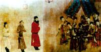 步輦圖 中坐者為唐太宗左二為吐蕃請(qǐng)婚使臣祿東贊,唐代著名畫(huà)家閻立本繪