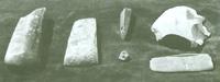 卡若遺址面積約10000平方米,出土大型石器近7000件,有鏟、斧、鋤、犁和切割器、刮削器、砍砸器等工具;骨器400多件,有骨錐、骨針等;陶片20000多件,陶色有紅、黃、灰、黑四種,有陶罐、陶缽、陶盆等。另外,卡若遺址還出土了豬、羚羊、狍子等十幾種動物的骨骼,以及大量的粟類谷物,還有房屋遺址27處,有石墻、灶、灰坑等。據(jù)考古學(xué)家鑒定,卡若遺址的年代距今4000多年,它證明當(dāng)時西藏人類種群的一部分正逐漸進(jìn)入定居時代,生產(chǎn)活動已從采獵擴(kuò)展到兼營農(nóng)業(yè)和飼養(yǎng)家畜。考古學(xué)家還認(rèn)為,卡若遺址是一座至少延續(xù)了1000多年的原始村落,卡若文化與黃河流域的馬家窯、半山、馬廠文化的進(jìn)化水平基本相同,而且文化內(nèi)涵有很大的相似性。(《昌都卡若》,文物出版社,1985;侯石柱《西藏考古大綱》,西藏人民出版社)拉薩曲貢遺址有早期石板墓兩座,灰坑十多個,出土石器有近萬件之多,骨器有古針、骨錐等,特別是一枚骨針在針尖穿一針鼻,針尾無鼻,其原理與現(xiàn)代縫紉機(jī)針相似,是全國史前遺址中首次發(fā)現(xiàn)。陶器有單耳罐、雙耳罐、高領(lǐng)鼓腹罐等,外表打磨光滑,壓有變化多樣的幾何紋飾。另外,曲貢遺址中發(fā)現(xiàn)雙肩石鏟、石磨盤,表明4000年前拉薩一帶農(nóng)業(yè)經(jīng)濟(jì)已經(jīng)產(chǎn)生。(王仁湘《拉薩河谷的新石器時代居民——曲貢遺址發(fā)掘記》,《西藏研究》1990年第4期)