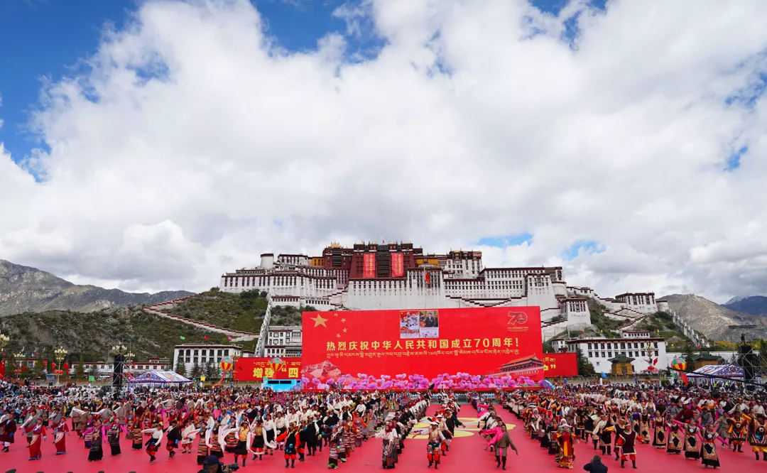 2019年9月29日上午,西藏自治區(qū)以千人鍋莊的形式,表達(dá)對(duì)黨的無(wú)限熱愛(ài)和對(duì)祖國(guó)母親的深深祝福。王淑 攝