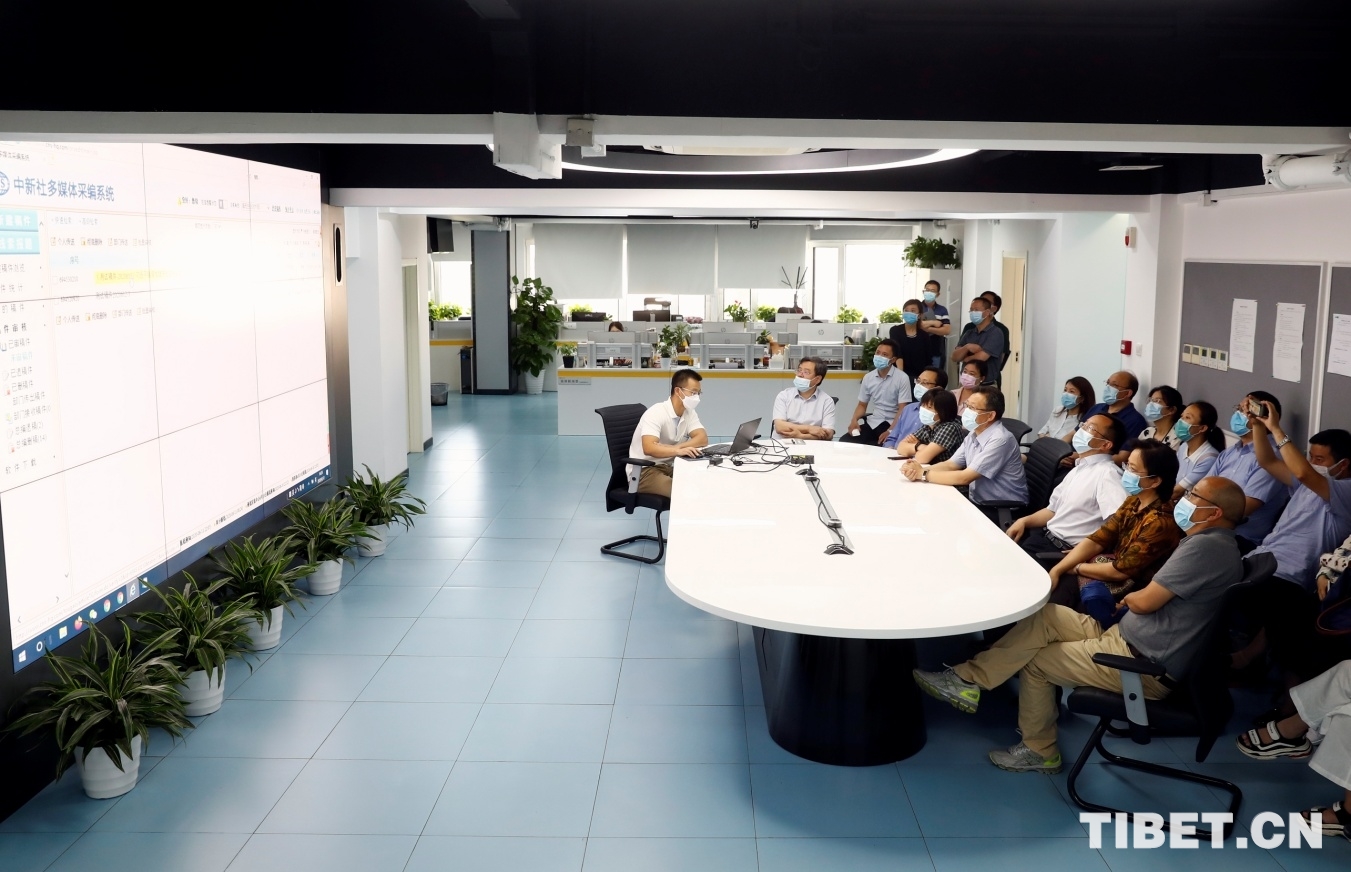 6月12日下午,中國西藏信息中心一行16人在中心主任公保同志的帶領(lǐng)下,前往中新社開展調(diào)研。先后參觀了中新社旗下包括中國新聞網(wǎng)、《中國新聞》報、《中國新聞周刊》《世界華文傳媒年鑒》及《中國慈善家》五大運營實體,現(xiàn)場觀摩多媒體采編審發(fā)業(yè)務(wù)系統(tǒng)應(yīng)用演示,并實地查看了值班中心的運作情況。