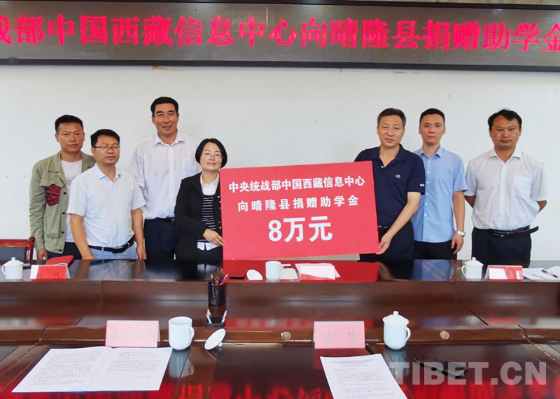 圖為公保主任代表中國西藏信息中心向晴隆縣捐贈助學(xué)金8萬元
