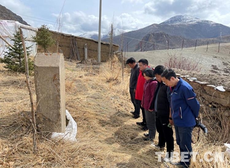 中心昌都采訪組一行在洛隆縣義章寺烈士紀(jì)念碑前肅立默哀。這塊紀(jì)念碑是1959年中國(guó)人民解放軍駐西藏部隊(duì)西藏平叛后設(shè)立的一座紀(jì)念碑。