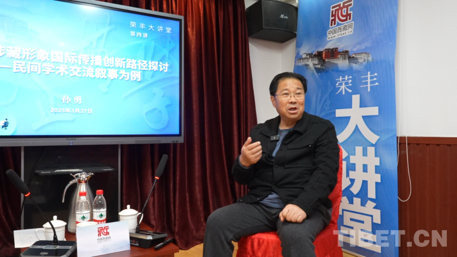 3月27日,四川師范大學(xué)教授、博士生導(dǎo)師孫勇應(yīng)邀做客中國西藏信息中心“榮豐大講堂”,圍繞《新時代涉藏形象國際傳播創(chuàng)新路徑探討——以跨國民間學(xué)術(shù)交流敘事為例》主題作專題報告,為提升涉藏國際傳播效能提供理論支持與實踐路徑。