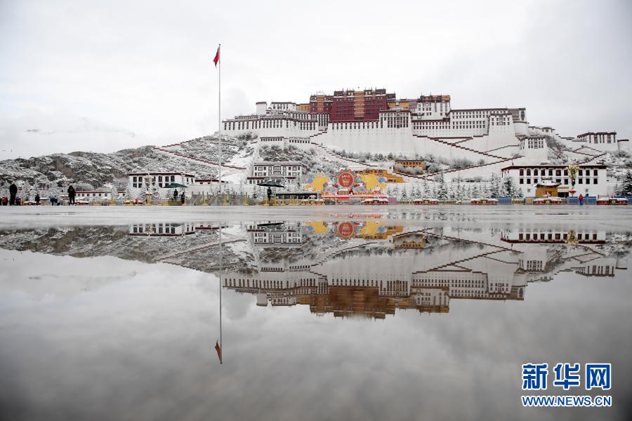 3月14日拍攝的雪中布達拉宮。新華社記者 覺果 攝