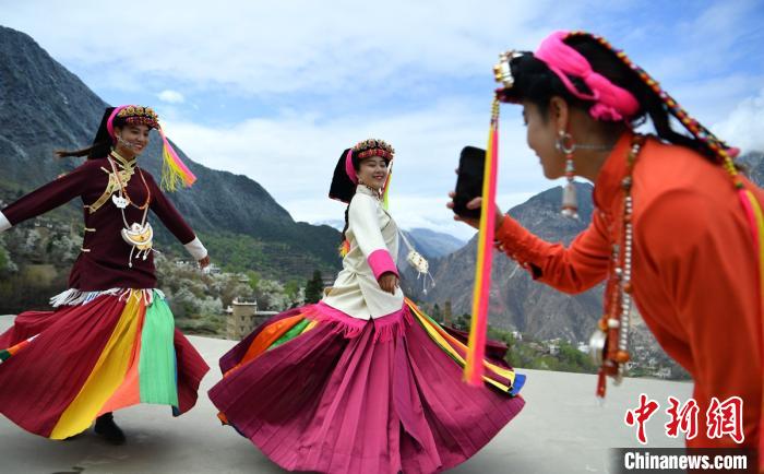 藏寨、碉樓下盛開(kāi)的梨花,丹巴女孩穿梭鄉(xiāng)間小路。劉忠俊 攝