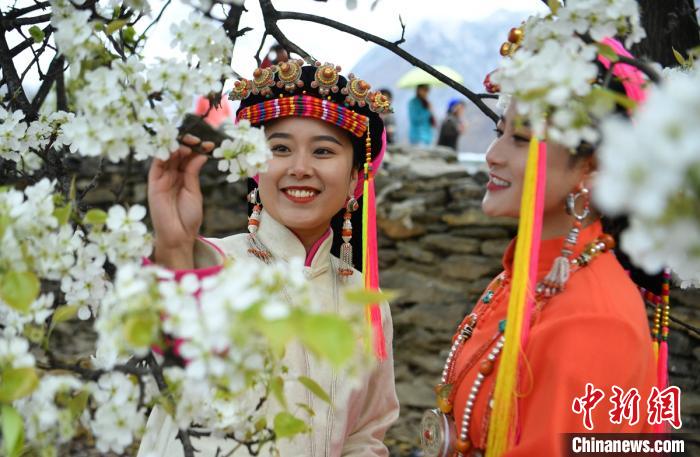 賞梨花的丹巴女孩。劉忠俊 攝