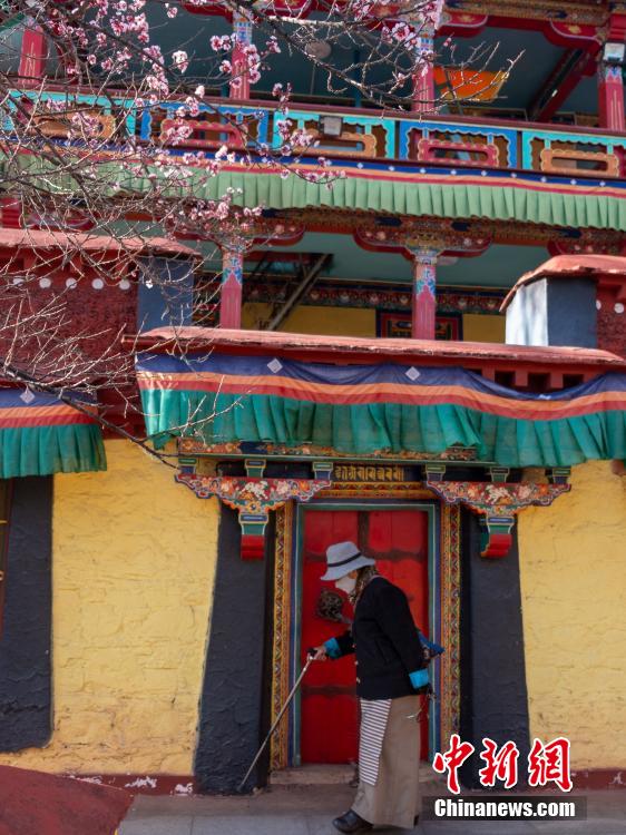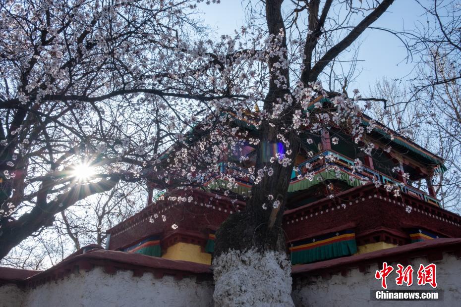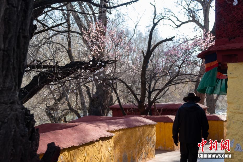 3月23日,拉薩龍王潭寺廟內(nèi)的杏花、桃花等已經(jīng)綻放。江飛波 攝