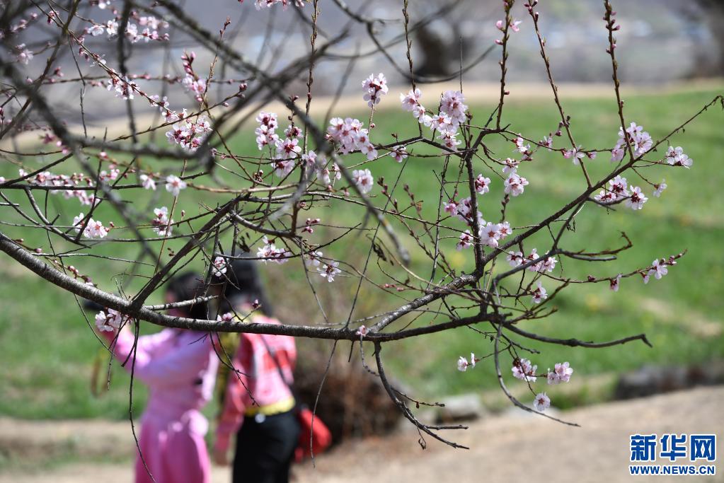 3月27日,一名姑娘在林芝市嘎拉村欣賞桃花。新華社記者 孫瑞博 攝