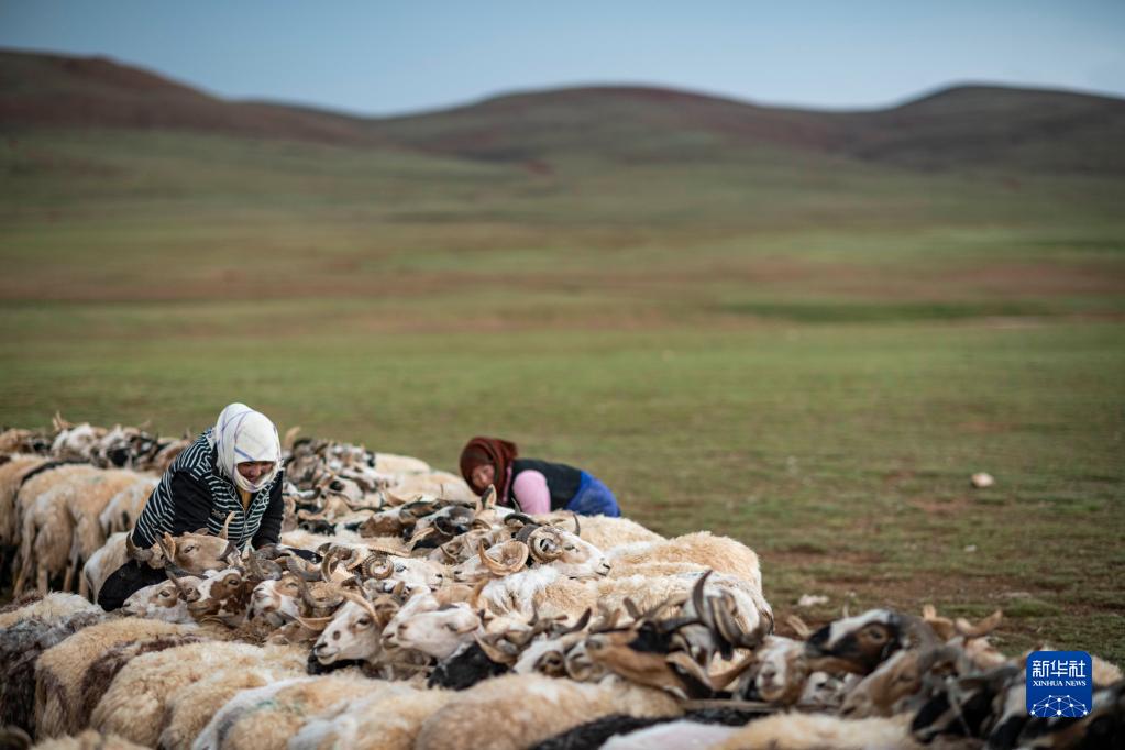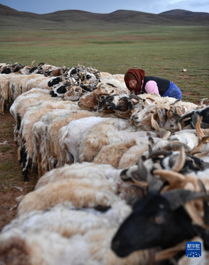7月12日,在西藏那曲市雙湖縣多瑪鄉(xiāng),牧民在擠綿羊奶。新華社記者 周荻瀟 攝