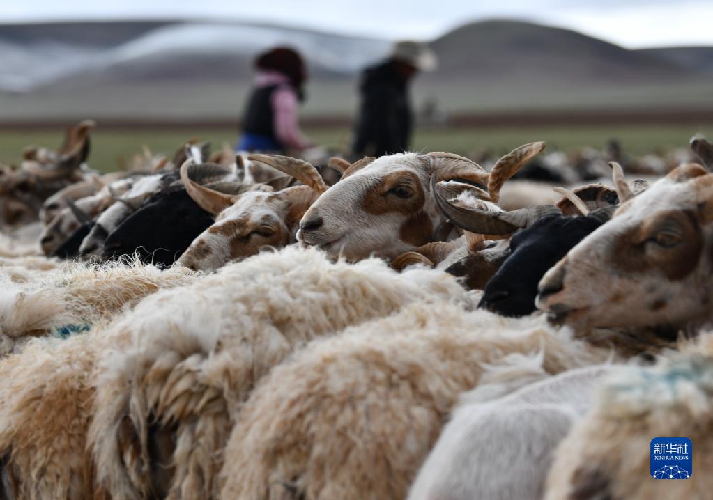 7月12日,在西藏那曲市雙湖縣多瑪鄉(xiāng),牧民在擠綿羊奶。新華社記者 晉美多吉 攝