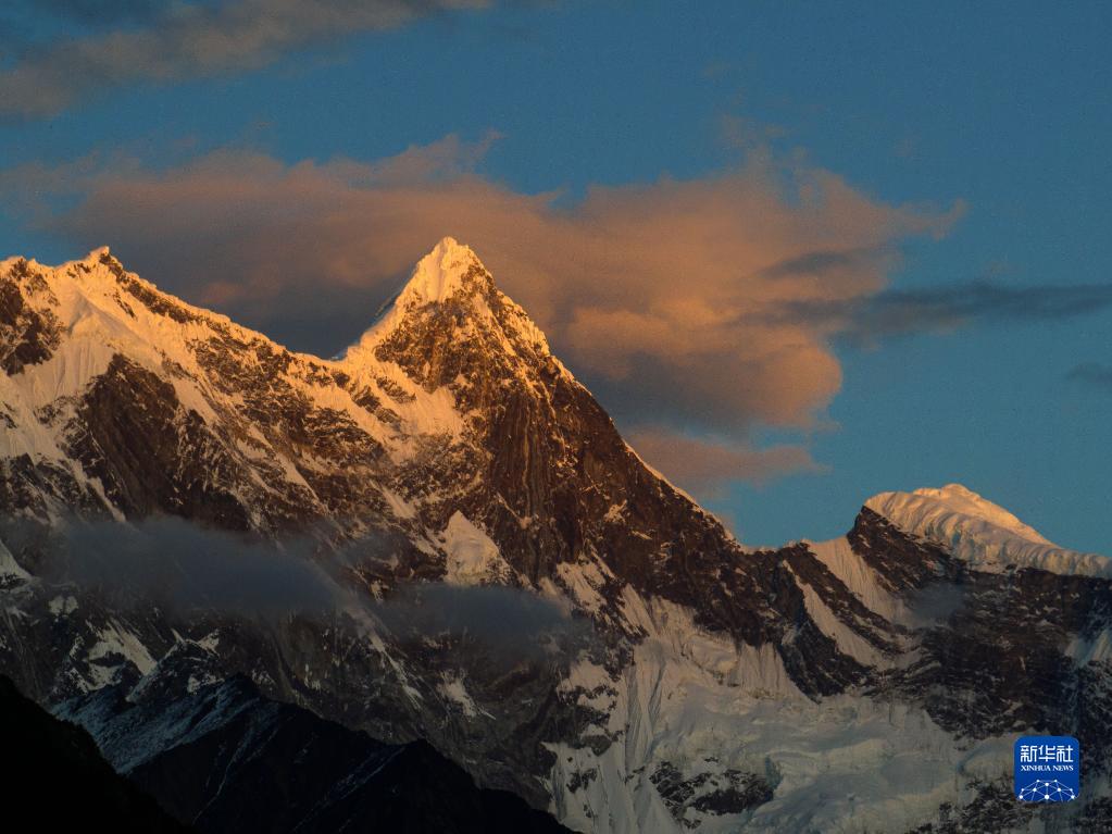 夕陽(yáng)下的加拉白壘峰(11月28日攝,無人機(jī)照片)。新華社發(fā)(董志雄 攝)