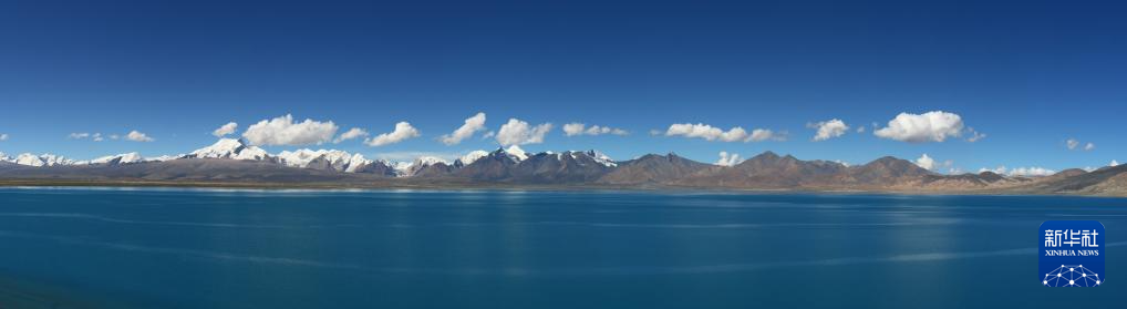 佩枯錯(cuò)和遠(yuǎn)處的雪山(9月2日攝,拼接照片)。新華社記者 聶毅 攝