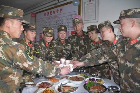 軍營(yíng)里的年夜飯由嘹亮的軍歌中開(kāi)始。節(jié)前,武警日喀則森林大隊(duì)就廣泛征求戰(zhàn)士意見(jiàn)建議,精心籌劃準(zhǔn)備食材,炊事班盡心為戰(zhàn)友們獻(xiàn)上了一大桌美味佳肴,戰(zhàn)友們共飲歡慶,其樂(lè)融融。零點(diǎn)剛過(guò),炊事班又為戰(zhàn)士們準(zhǔn)備好了熱氣騰騰的湯圓、餃子。除夕夜雖然少了家人的陪伴,但是有一起摸爬滾打、流血流汗的戰(zhàn)友的陪伴,營(yíng)區(qū)中處處洋溢著家的味道。
