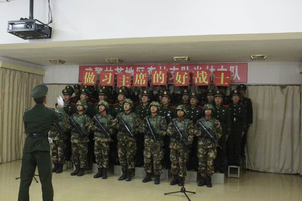 圖為戰(zhàn)士們演唱歌曲《做習(xí)主席的好戰(zhàn)士》