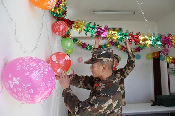 圖為戰(zhàn)士們精心裝扮環(huán)境