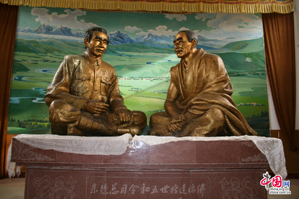圖為甘孜自治州白利寺,五世格達(dá)活佛紀(jì)念館,陳列著紅軍總司令朱德和五世格達(dá)活佛促膝長(zhǎng)談的塑像。