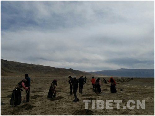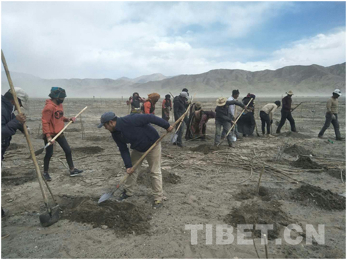中國西藏網(wǎng)訊 仲春初四日,春色正中分。春天的拉薩河谷,萬物復(fù)蘇。在全民義務(wù)植樹的三月時節(jié),拉孜縣扎西崗鄉(xiāng)吉榮村路旁的沙地上,吉榮村駐村工作隊(duì)正在組織村民進(jìn)行義務(wù)植樹,轟鳴的機(jī)器聲和歡快的勞動號子,驚醒了農(nóng)田里前來越冬的各類候鳥。