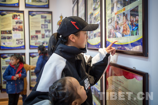 人群中,居民瓊吉正在給女兒旦增央吉講解圖片上的內(nèi)容。雖然旦增央吉還不太理解,但是瓊吉說(shuō):“現(xiàn)在孩子才上小學(xué)一年級(jí),對(duì)于圖片內(nèi)容還不太懂,但是通過(guò)從小教育,帶孩子來(lái)看看這些東西,能讓孩子漸漸在心里形成深刻印象,等到她長(zhǎng)大了就明白了,我們今天美好生活、寬敞的教室,舒適的學(xué)習(xí)環(huán)境的來(lái)之不易,讓孩子牢記歷史,珍惜生活?!?/p>