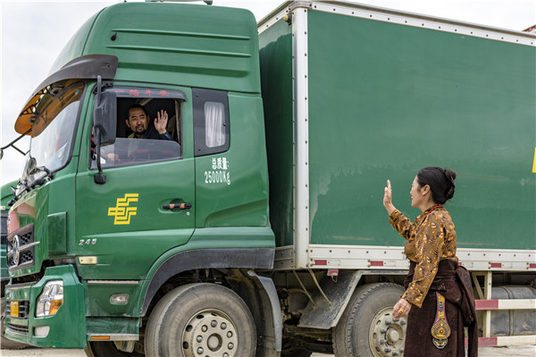 在兒子扎西澤翁眼里,阿爸不僅是同事,更是心中的英雄。每次出車前,妻子澤仁曲西都會為其美多吉送行。目送他離開后,還會為他祈福,祈求丈夫平安歸來。妻子為丈夫送行,這是雪線郵路上的家屬們長期形成的默契。圖片來源:中國郵電報(bào)