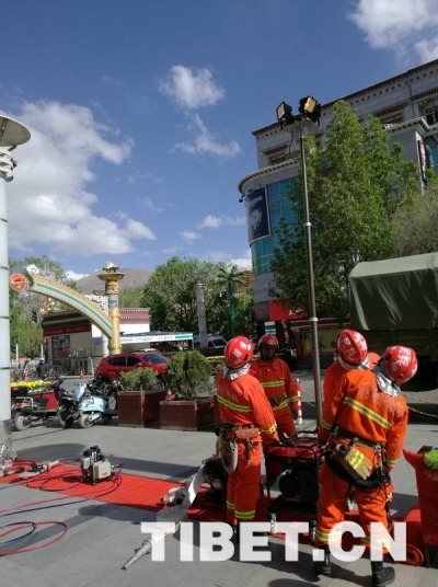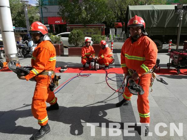 圖為拉薩警備區(qū)城關區(qū)人武部搶險救援分隊民兵進行救援裝備操作展演示