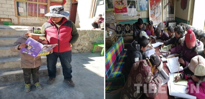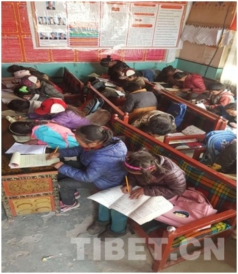 1月份,正是西藏最冷的時(shí)候,在寒冷的冬季輔導(dǎo)孩子們學(xué)習(xí)不是一件容易的事情。還好西藏冬日的陽(yáng)光在中午的時(shí)候是暖和的,工作隊(duì)就利用中午光照充足、比較暖和的時(shí)間,將學(xué)生們集中到各村村委大院進(jìn)行輔導(dǎo)學(xué)習(xí)活動(dòng)。