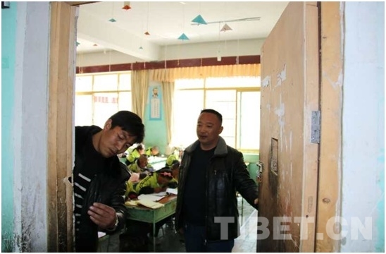 哲宗村駐村隊(duì)長(zhǎng)強(qiáng)巴扎西帶領(lǐng)大家檢查亞木鄉(xiāng)小學(xué)教學(xué)設(shè)施
