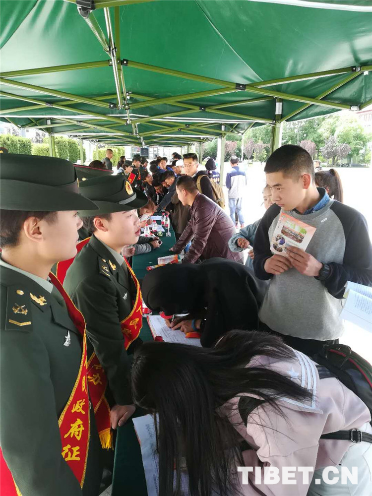 圖為2018年拉薩市大學(xué)生征兵宣傳現(xiàn)場