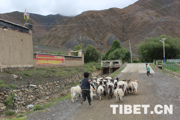 目前,白朗縣已建成5428個(gè)大棚,成為西藏最大的高原大棚蔬菜基地,年產(chǎn)蔬菜3750萬(wàn)公斤,年銷(xiāo)售額超億元。全縣1.28%的可耕地,產(chǎn)出了占農(nóng)牧業(yè)總量41%的效益。如今白朗縣果蔬種植走向規(guī)模化,高原果蔬產(chǎn)業(yè)經(jīng)歷了從無(wú)到有、從小到大的過(guò)程。圖為放羊的小朋友。
