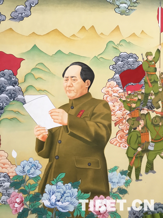 中國西藏網(wǎng)訊 據(jù)悉,由“華銳唐卡藝術(shù)傳習所”唐卡代表性傳承人扎西多杰設(shè)計創(chuàng)作的紅色文化唐卡《世界偉人——毛澤東》即將完工,將在2019年問世。