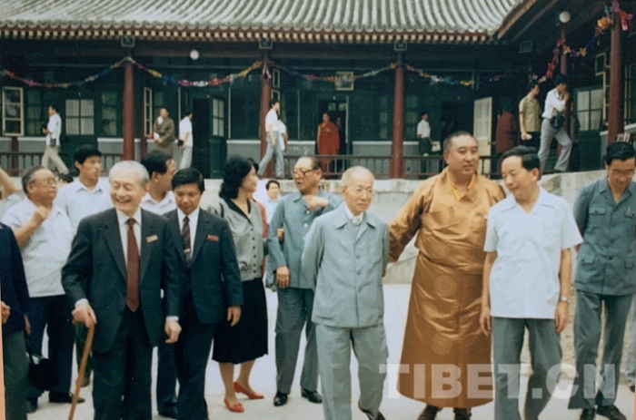 圖為參加中國(guó)藏語系高級(jí)佛學(xué)院成立大會(huì)的全體領(lǐng)導(dǎo)與師生合影。