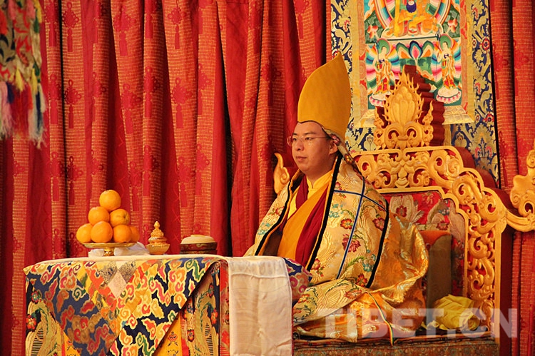 圖為十一世班禪端坐法座,領誦經(jīng)文。攝影:李元梅