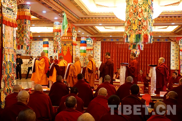 法會禮請全國政協(xié)常委、中國佛教協(xié)會副會長班禪額爾德尼?確吉杰布拈香主法,中國藏語系高級佛學院領導、經(jīng)師、學員及宗教界教職員工約130人參加法會。