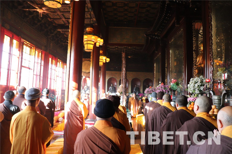 中國(guó)西藏網(wǎng)訊 今年適逢中國(guó)佛教協(xié)會(huì)名譽(yù)會(huì)長(zhǎng)十世班禪大師圓寂30周年,1月28日上午9時(shí),中國(guó)佛教協(xié)會(huì)及在京直屬寺院法師、工作人員、首都善信居士齊聚北京廣濟(jì)寺,隆重舉行紀(jì)念十世班禪大師圓寂30周年法會(huì),深切緬懷十世班禪大師。法會(huì)禮請(qǐng)中國(guó)佛教協(xié)會(huì)演覺副會(huì)長(zhǎng)、宗性副會(huì)長(zhǎng)、祜巴等傣副會(huì)長(zhǎng)主法,宏度副秘書長(zhǎng)主持紀(jì)念儀式。三位法師拈香主法,帶領(lǐng)僧眾莊重誦經(jīng),圓滿完成法會(huì)儀軌。