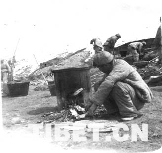 圖為進(jìn)藏路上炊事員在做飯。