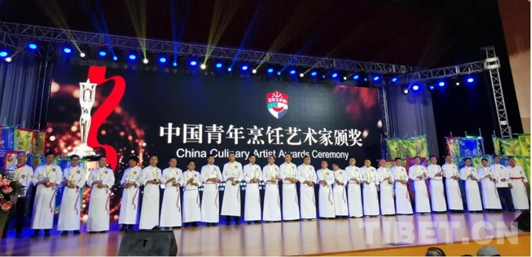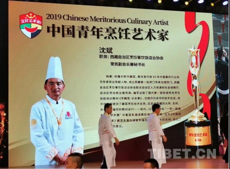 圖為在2019烹飪藝術(shù)家年會上,沈斌被授予“中國青年烹飪藝術(shù)家”稱號。西藏烹飪餐飲飯店業(yè)協(xié)會供圖