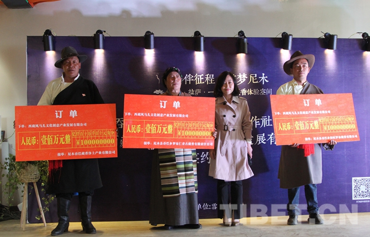 圖為三家尼木藏香專業(yè)合作社各從風(fēng)馬兒文創(chuàng)獲得100萬元訂單。