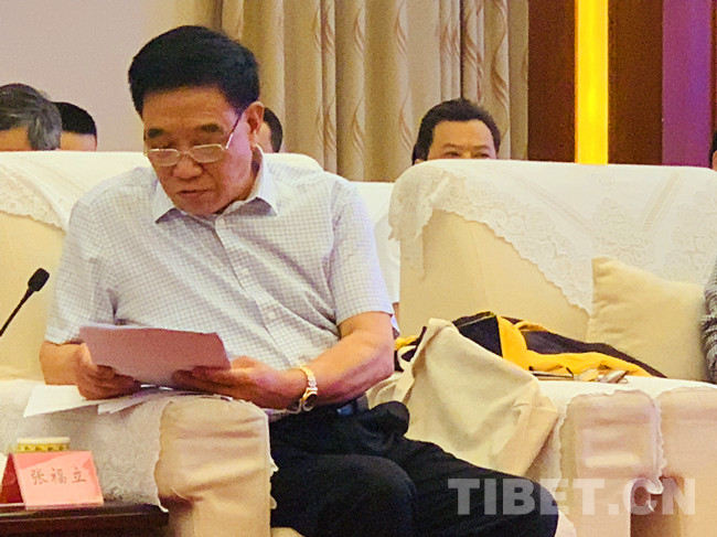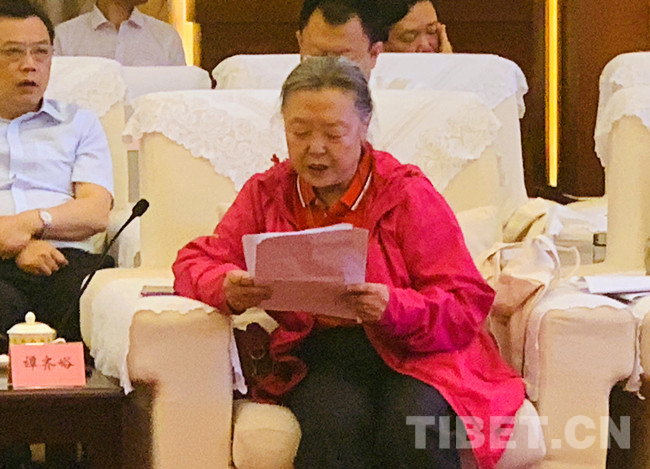 圖為原西藏軍區(qū)副政委、十八軍烈士張福林之弟張福立在座談會(huì)上發(fā)言。