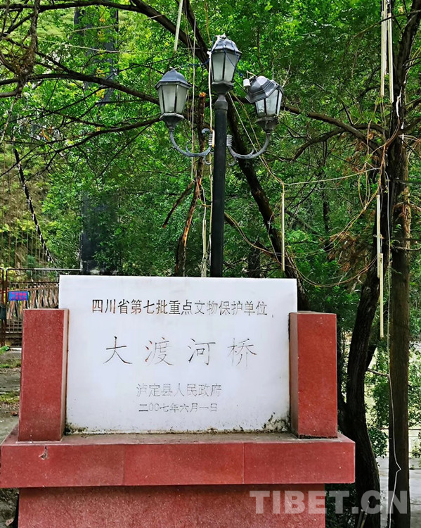 七十年代初,隨著祖國社會主義建設(shè)事業(yè)的發(fā)展,又一座具有民族色彩的雙曲拱橋飛跨在大渡河上,從此,大渡河橋作為戰(zhàn)備橋保護起來。1999年,該橋被列入甘孜藏族自治州第一批重點文物保護單位。