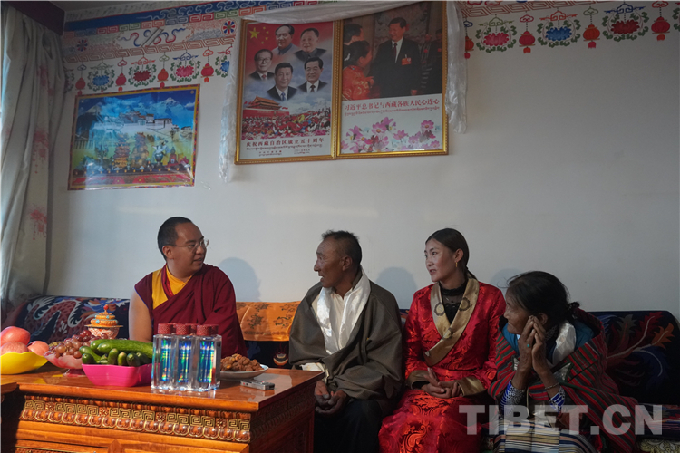 中國(guó)西藏網(wǎng)訊 “這是我們?nèi)迦诵迊淼母7??!蔽鞑刈灾螀^(qū)阿里地區(qū)日土縣甲崗邊境建設(shè)第一村扎西頓珠一家說出了村民們共同的心聲。7月26日,全國(guó)政協(xié)常委、中國(guó)佛教協(xié)會(huì)副會(huì)長(zhǎng)、中國(guó)佛教協(xié)會(huì)西藏分會(huì)會(huì)長(zhǎng)班禪額爾德尼?確吉杰布前往甲崗村調(diào)研,并走訪慰問旺堆平措、扎西頓珠兩戶群眾家庭。