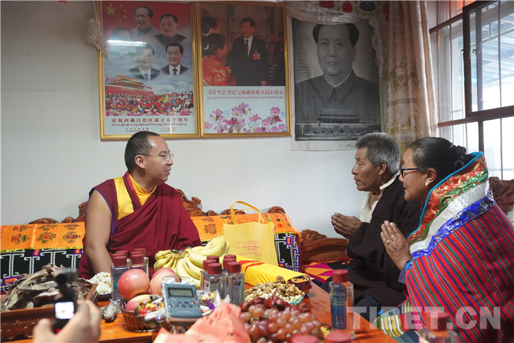 圖為十一世班禪走進(jìn)村民家中 攝影:王淑