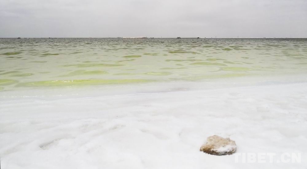 圖為察爾汗鹽湖一角凝結(jié)的鹽花 攝影:劉莉