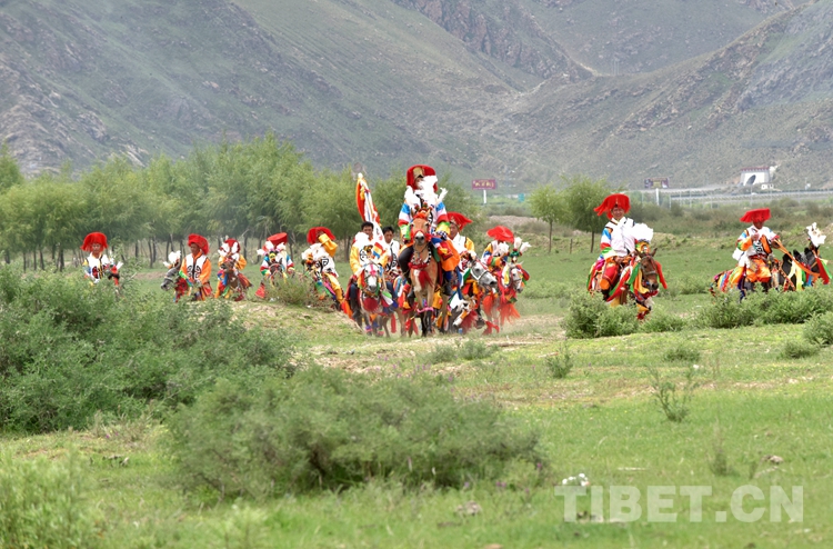 夏日拉薩河谷,山巒披綠、萬(wàn)物葳蕤。陣陣馬蹄、叮當(dāng)馬鈴聲中,馬隊(duì)經(jīng)過(guò)農(nóng)田,帶去青稞黃熟的信號(hào);繞過(guò)村舍,帶來(lái)豐收在望的喜悅;來(lái)到賽馬場(chǎng),帶給村民們陣陣歡笑。