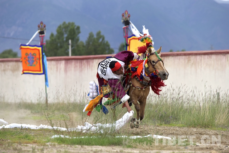 圖為一名騎手在表演馬上拾哈達(dá) 攝影:王媛媛