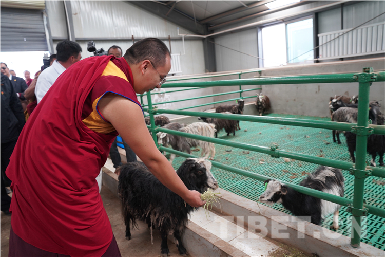 十一世班禪十分關(guān)心關(guān)懷家鄉(xiāng)農(nóng)牧民的生產(chǎn)生活情況,8月6日,十一世班禪前往平均海拔超過5000米的尼瑪縣調(diào)研扶貧產(chǎn)業(yè)。十一世班禪先后調(diào)研了尼瑪縣“萬畝千畜”運營和帶動貧困戶脫貧情況、易地扶貧搬遷集中安置點農(nóng)牧民群眾生產(chǎn)生活情況等。