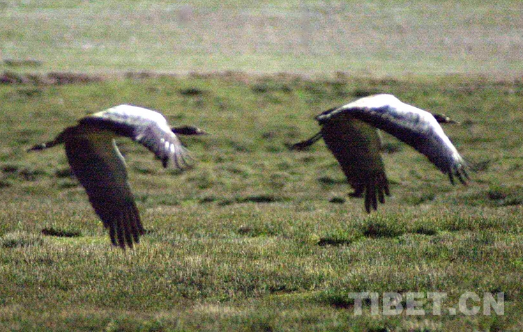 黑頸鶴是典型的候鳥,每年三月份排著“一”或“人”字隊形,由藏南遷居到藏北,選擇人煙稀少,有山峰為屏障,有食物可尋覓的開闊的湖泊、河流、沼澤作棲息地。它們往往五六只成一群,多則數(shù)十只,終日嬉戲?qū)な?,選擇伴侶。