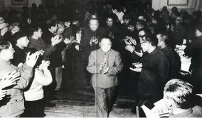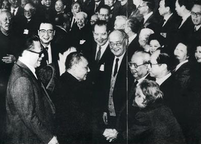 圖為1978年3月,中央統(tǒng)戰(zhàn)部舉行宴會(huì),招待各民主黨派和中華全國(guó)工商業(yè)聯(lián)合會(huì)(以下簡(jiǎn)稱“全國(guó)工商聯(lián)”)負(fù)責(zé)人,中共中央副主席、中國(guó)人民政治協(xié)商會(huì)議第五屆全國(guó)委員會(huì)主席鄧小平,中國(guó)人民政治協(xié)商會(huì)議第五屆全國(guó)委員會(huì)副主席烏蘭夫出席了招待會(huì) 圖片來(lái)源:人民網(wǎng)