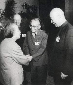 1990年2月,鄧小平、江澤民、李鵬、萬(wàn)里會(huì)見香港基本法起草委員會(huì)全體委員時(shí),與參加委員會(huì)的雷潔瓊、費(fèi)孝通等握手。各民主黨派有數(shù)十位專家、學(xué)者分別參加了香港和澳門基本法起草委員會(huì),為貫徹“一國(guó)兩制”方針和香港、澳門回歸祖國(guó)做了許多工作 圖片來(lái)源:人民網(wǎng)