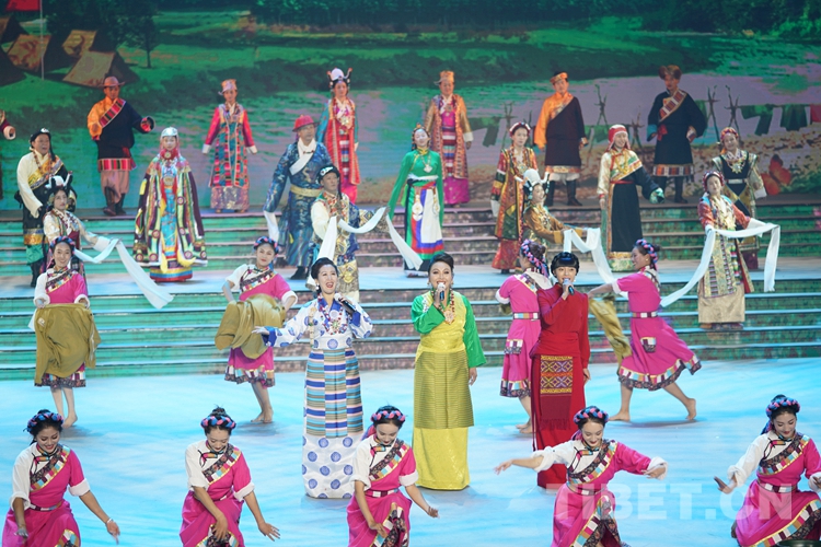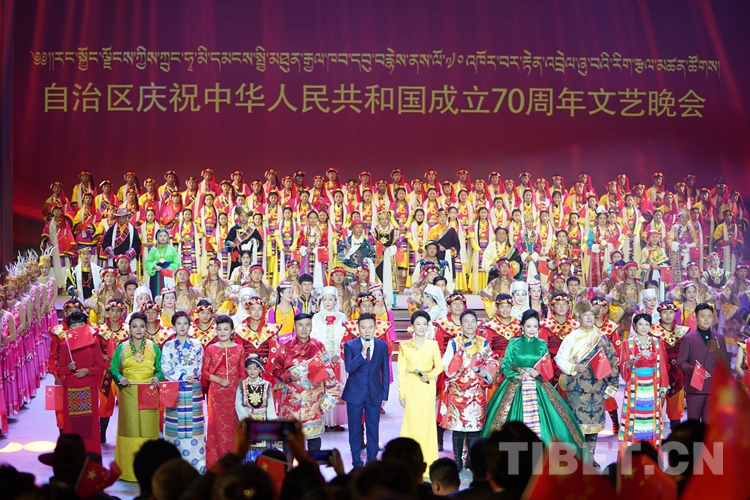 中國西藏網(wǎng)訊 歡歌起舞迎盛世,為表達(dá)西藏各族人民群眾對(duì)共產(chǎn)黨的無限熱愛和對(duì)祖國母親的深深祝福,9月28日晚,由西藏自治區(qū)黨委宣傳部、西藏自治區(qū)文化廳主辦、西藏自治區(qū)歌舞團(tuán)承辦的西藏自治區(qū)慶祝中華人民共和國成立70周年文藝晚會(huì)在藏戲藝術(shù)中心舉行。